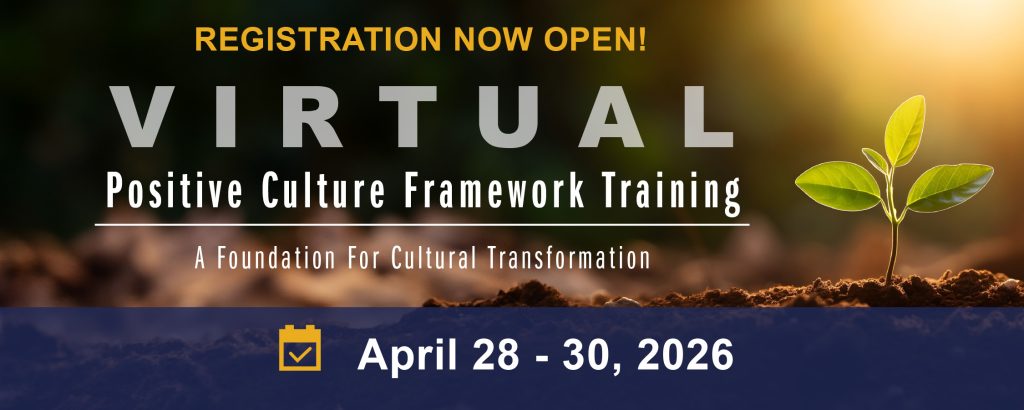 Registration is open for the virtual Positive Culture Framework Training April 28-30, 2026. Register today!